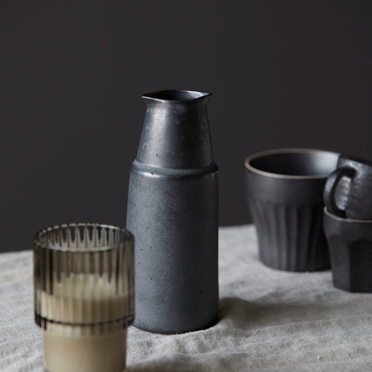 A little extra goes a long way when it comes to setting the right table. With this large bottle you can put milk, juice or dressing on the table in a rustic and stylish way. Its been designed with a dark, reactive glaze for a unique look. This bottle goes well with the rest of the Porcel dinner set for a rustic table arrangement, or together with dinnerware in lighter shades and a variety of glazes and textures. Due to the matt texture of the glaze, scratches might occur over time as you use your item. This simply adds to the charm and rugged appeal of the design.
