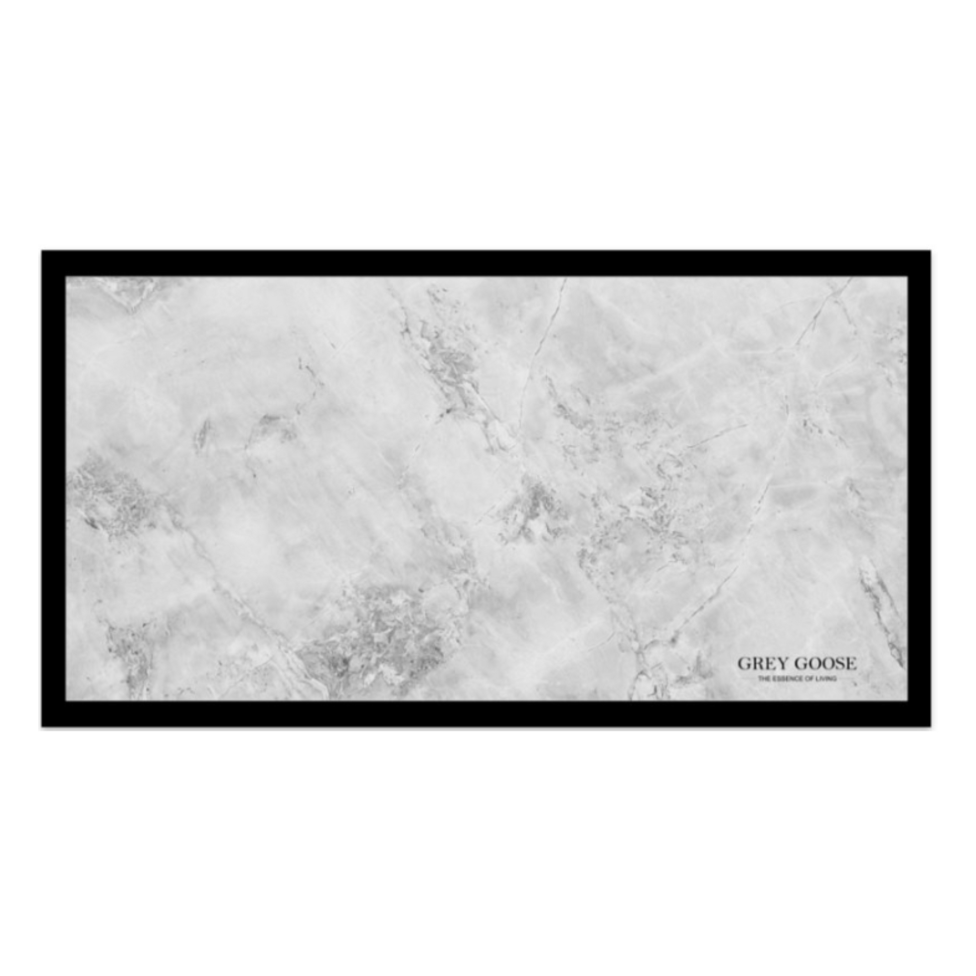Black non slip rubber backed bar mat. 2mm thick and machine washable under 30 degrees. Hang to dry.
