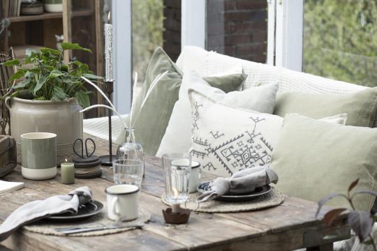 52% cotton 48% linen. Can be washed up to 40 degrees.