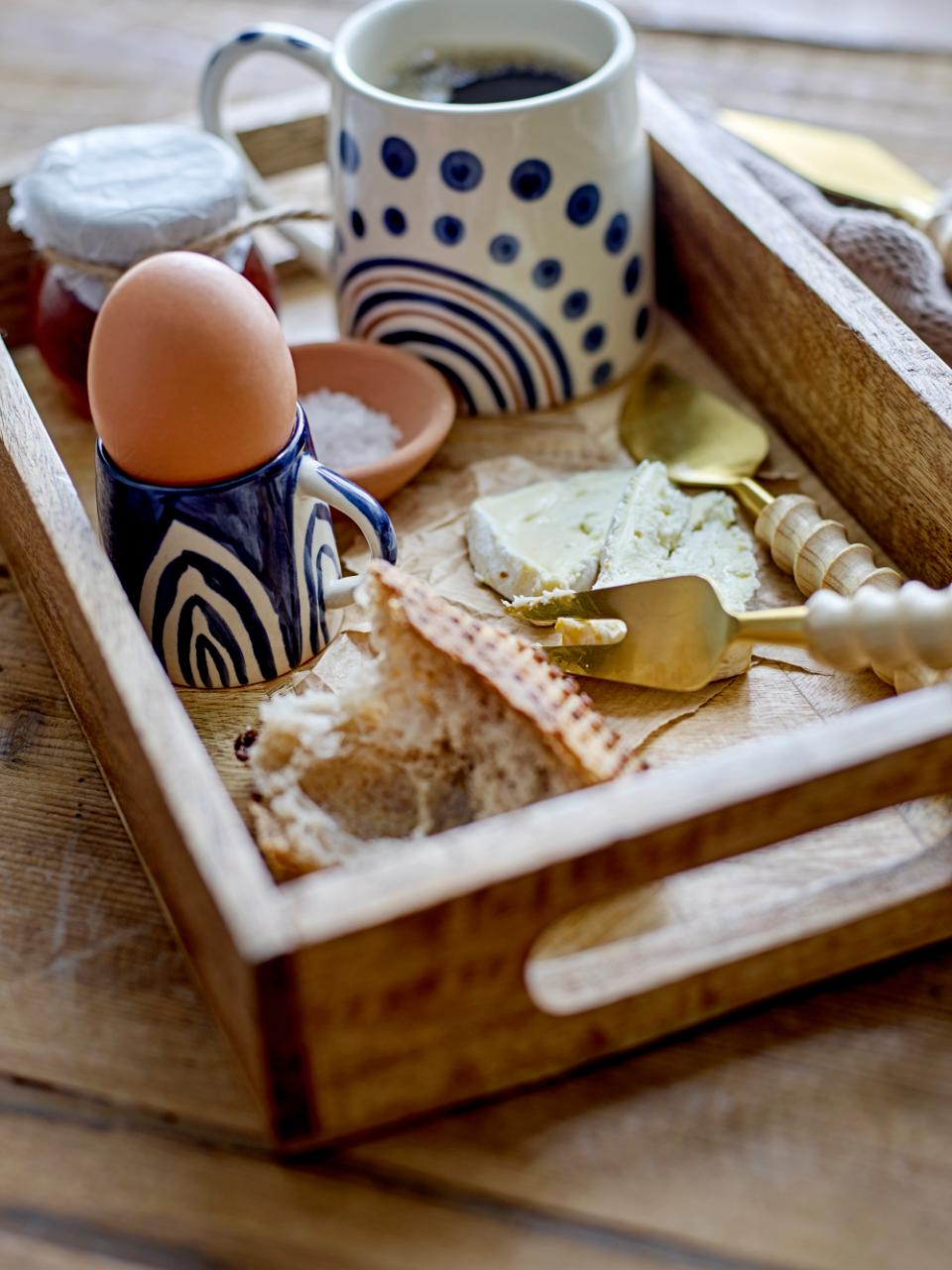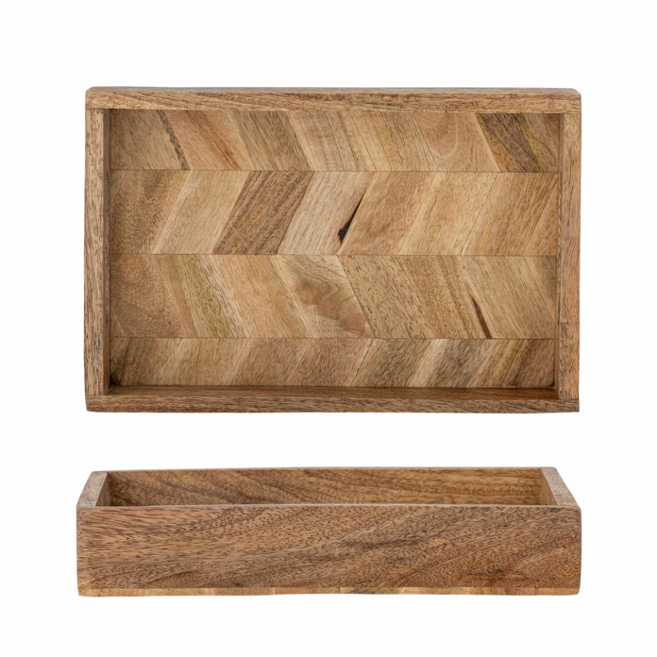 This tray is made of mango wood, in a beautiful herringbone pattern, which adds a modern touch to the traditional shape. Use the tray both as a practical and decorative addition to the home. The serving tray is sealed and lacquered.