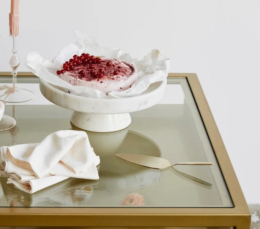 An elegant way of cutting and serving cake for guests. Stainless steel with matt gold plating.