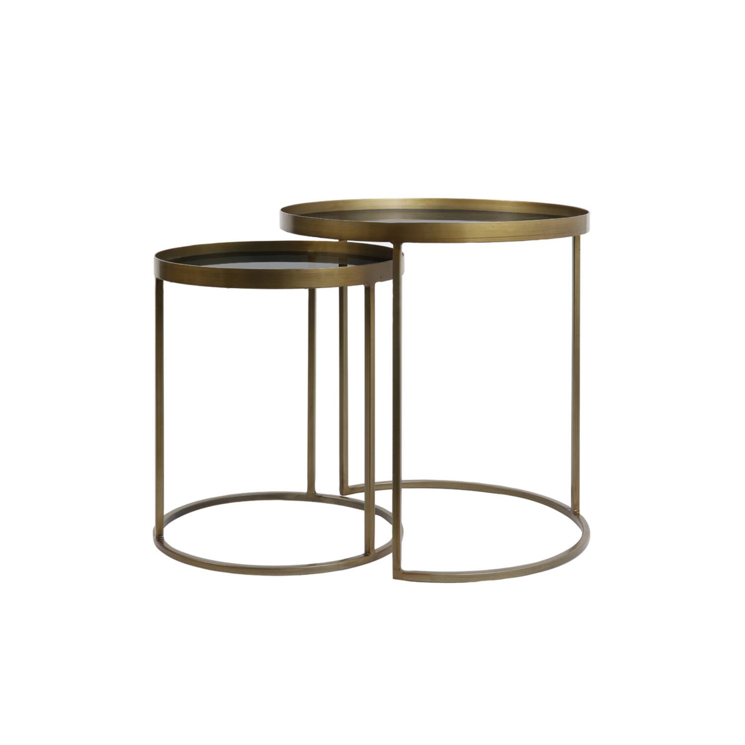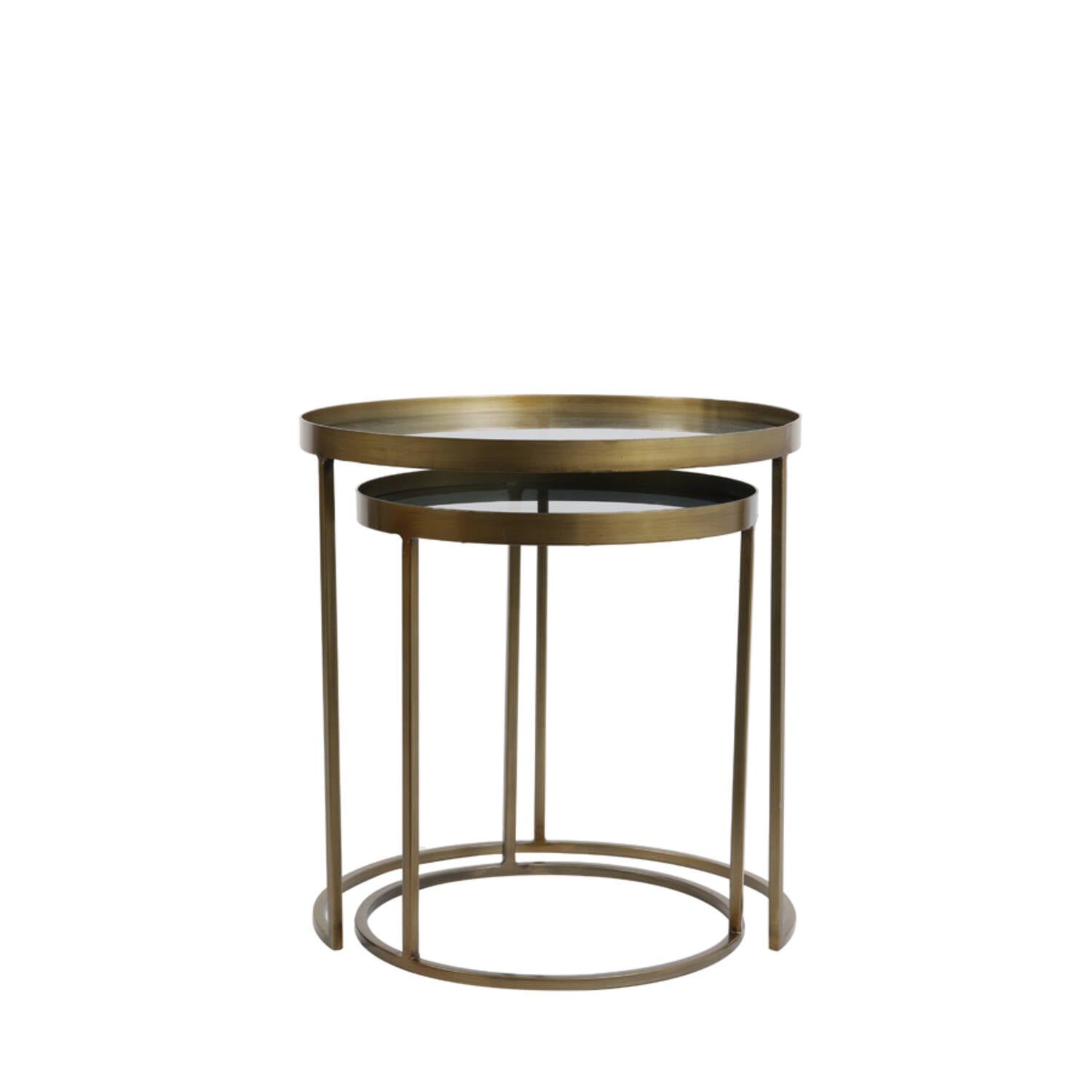 Side table S/2 Ø40x45+Ø50x52 cm TALEK smoked glass-ant bronz