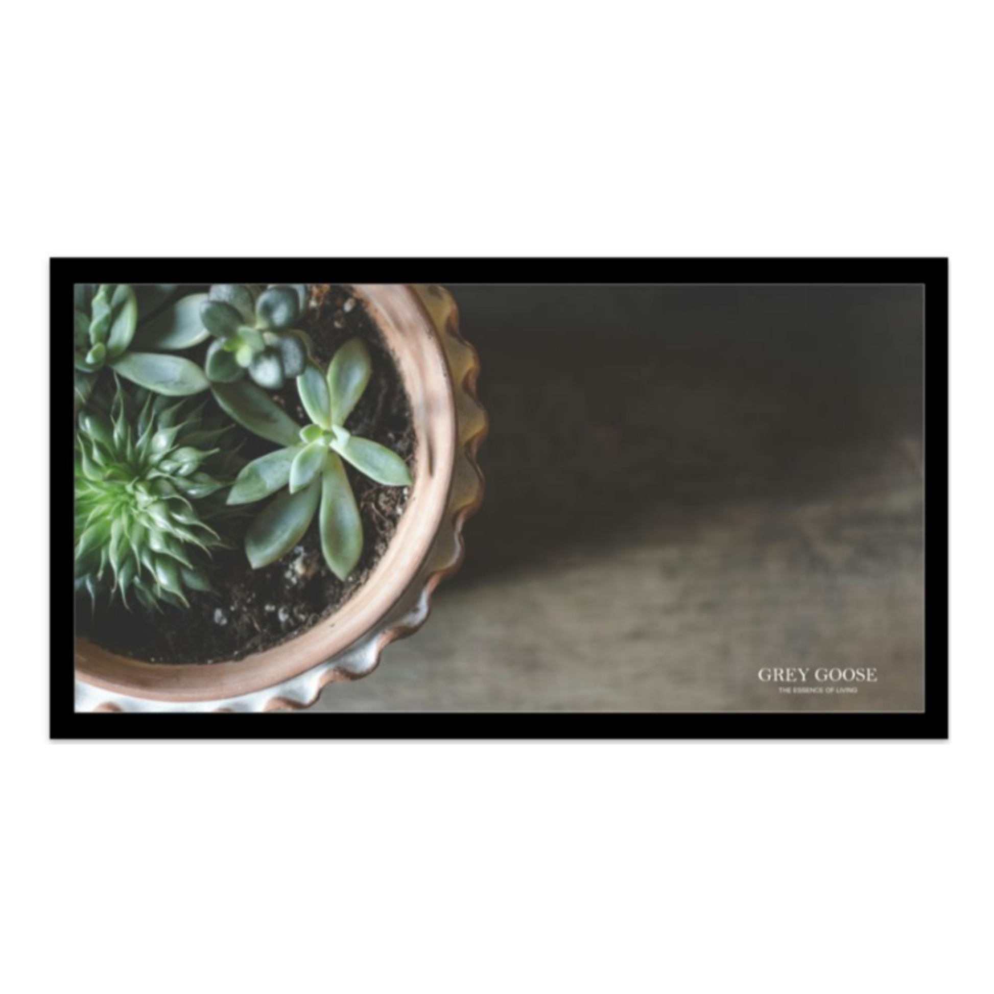 Black non slip rubber backed bar mat. 3mm thick and machine washable at 30 degrees. Hang to dry.